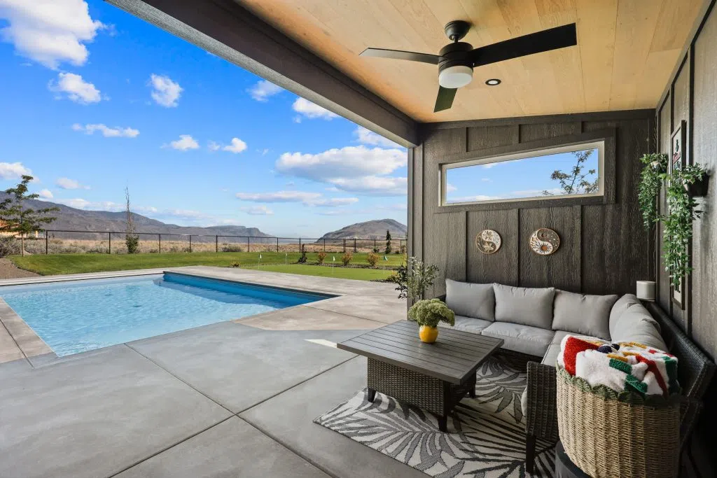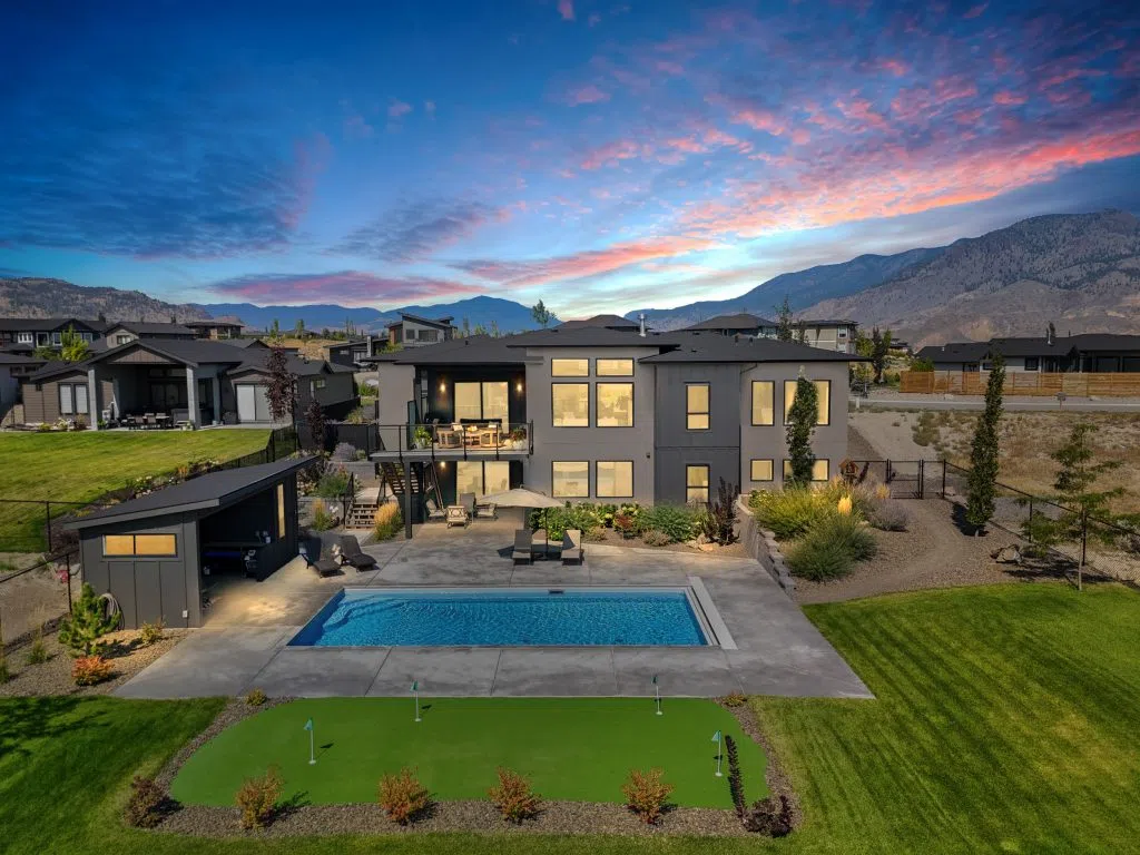 Welcome to 115 Lake Point Court, a masterfully crafted rancher perfectly situated on a 32,900+ sq.ft. estate lot in the sought-after community of Tobiano. Designed with an uncompromising attention to detail, this residence showcases soaring 10ft ceilings on the main level, engineered hardwood floors, custom cabinetry with built-in appliances, and quartz countertops throughout. The expansive great room is anchored by a stunning fireplace feature and framed by walls of windows capturing panoramic mountain views, while the chef-inspired kitchen with walk-in pantry blends beauty with function. The private primary suite offers a spa-like retreat with stone soaker tub, walk-in shower, dual vanities, and a custom walk-in closet. A second bedroom, elegant powder room, and a well-appointed mudroom/laundry complete the main floor. The fully finished walk-out basement is designed for entertaining with a large rec room and games room with wet bar, three additional bedrooms, two full bathrooms, and versatile space to be used as a den or extra storage. Step outside to a resort-inspired backyard featuring a 32×16 saltwater pool with automatic cover, pool shed with pump room, covered patio, and a fully fenced, professionally landscaped yard. Just steps from Kamloops Lake and the award-winning Tobiano Golf Course, this exceptional home offers the perfect blend of refined luxury, modern comfort, and the unparalleled lifestyle that Tobiano is known for.