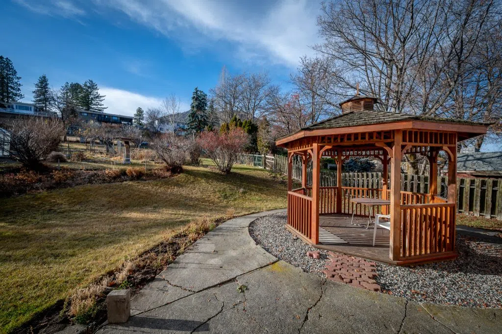 Bring your dream home to life in Barnhartvale with this well-cared-for home on an expansive 18,000 sq ft lot offering suite potential, where you can enjoy the functional layout today while modernizing to your needs. The main floor features a spacious living room with a cozy gas fireplace and a dining area with kitchen access. The kitchen provides plenty of counter and cabinet space, and the dining room opens onto a large 25′ x 13′ covered patio perfect for entertaining. Two bedrooms and a 4-piece bathroom complete the upstairs. Downstairs you’ll find a summer kitchen with in-law suite potential, a generous rec room with another gas fireplace, a 3-piece bathroom, and bedroom. There is also laundry and an unfinished workshop with carport access on the lower floor. Recent updates include a 2014 roof, 2019 furnace and AC, and a new hot water tank. Outside, the huge yard boasts fruit trees, bushes, a gazebo, and a garden area. This home is located on a welcoming street in the heart of Barnhartvale within walking distance to the school. All meas approx.