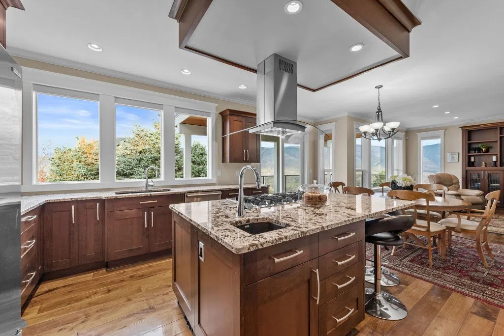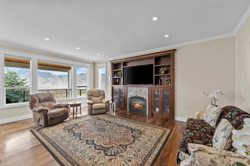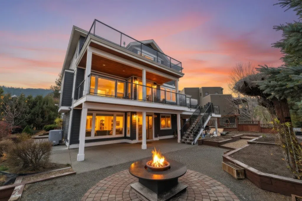 Located in desirable Juniper Ridge, this beautifully designed home offers sweeping valley and mountain views from nearly every window. The open-concept main floor features a bright living room with gas fireplace and built-in cabinetry, flowing into a spacious kitchen with an oversized fridge, centre island, stainless steel appliances and a walk-in pantry. The dining area opens to a large deck perfect for BBQs or relaxing while taking in the scenery. Upstairs are three bedrooms, including an impressive primary suite featuring a gas fireplace, private deck, walk-in closet and luxurious 5-piece ensuite with a soaker tub and separate shower. The 2nd floor also boasts a conveniently located laundry room, versatile loft space and 4 piece bathroom. The walk-out basement includes a bright one-bedroom suite with large windows, separate entrance, heated floors and separate laundry. Bonus approximate 910 sq.ft. workshop in the basement with power. Outside, numerous garden beds and a cozy gas fire pit create a peaceful space for gardening and outdoor enjoyment. Additional highlights include a spacious 3-car garage for ample parking and extra room for vehicles, tools and toys, hot-water-on-demand and a heat pump. Call today to view this stunning property!