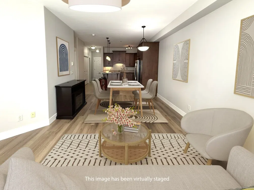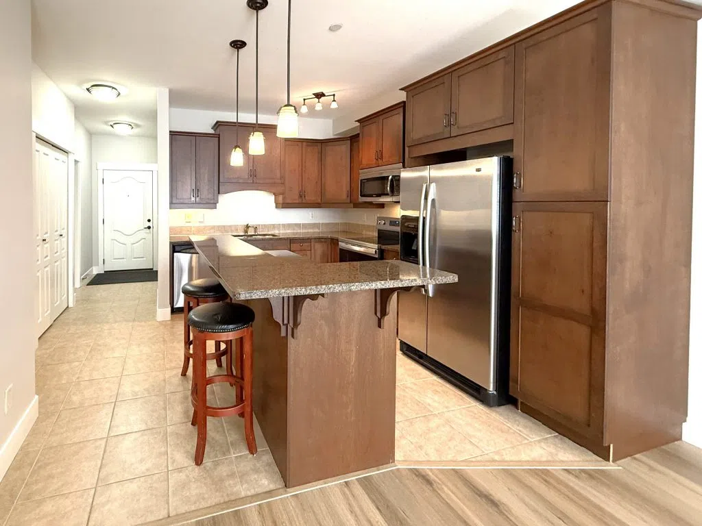 Skip the High Rent—Own Your Own Place Near Campus! Why rent when you can invest in yourself? This totally renovated 1-bedroom + den apartment is move-in ready and just a short walk to the university, shops, and all amenities. Fresh & Modern: New laminate floors, fresh paint, brand-new stove, new blinds, and a classy bathroom with tub + separate shower. Smart Layout: Spacious living room with cozy electric fireplace and wall A/C, opening to a covered deck backing onto peaceful green space—perfect for study breaks. Entertainer’s Kitchen: Granite island with raised bar (bar stools included), stainless steel appliances, and extra pantry storage. Convenience Built In: In-suite laundry, mirrored closets, underground parking (#A1), and private storage room (#2). Bonus Den: Ideal home office or study space. This home gives you comfort, independence, and the freedom to stop throwing money away on rent with quick possession available.