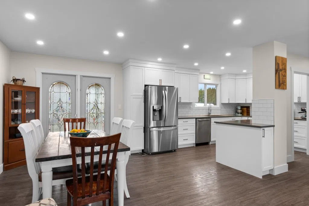 A beautifully updated Rayleigh family home featuring a bright 1-bedroom in-law suite and an above-ground pool in the spacious backyard. Over the past three years this home has seen extensive renovations, including an 8kW solar system (approx. $2,000/year in savings), a fully redone kitchen, bathroom taken to the studs with heated flooring, all new flooring throughout the home (except in the suite bathroom), new paint, ceilings, potlights, fixtures, trim, plus most windows were updated by previous owner. The main floor offers three bedrooms, a dining room with access to the covered deck, and a classic Rayleigh-sized yard perfect for outdoor living. Downstairs includes an additional bedroom and laundry/storage for the main home, plus a well-separated suite with a large bedroom, newer kitchen, big windows, and its own laundry. Parking is exceptional with space for 4–5 vehicles on the gravel shoulder, a full driveway, and side access to the backyard for RV parking. Located on a quiet street just a short walk to the school, this is an ideal Rayleigh opportunity. All meas approx.