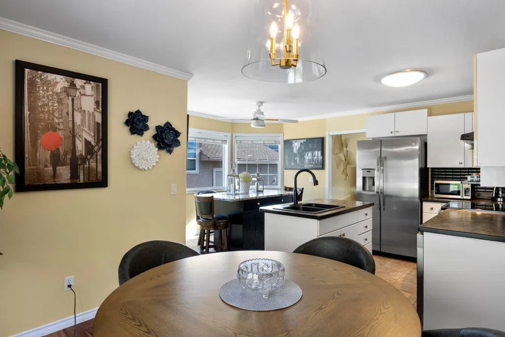 Step into comfort and style with this beautifully updated home featuring an updated kitchen complete with a new granite-topped island—perfect for entertaining or casual family meals. The walk in main level offers two spacious bedrooms, including a primary suite with a 3-piece ensuite and a generous walk-in closet. An upgraded main bathroom boasts a sleek 5′ shower. Downstairs, the fully finished basement expands your living space with a large bedroom/den, a massive rec room, cozy family room, ample storage, a 3-piece bathroom, and a dedicated laundry area. Outside, enjoy a beautifully landscaped yard with a large patio, new fencing, and underground sprinklers for easy maintenance. Recent updates include a new front door, two patio doors, and a garage door (all replaced two years ago), a built-in vacuum system, fresh exterior paint (three years ago), a three-year-old hot water tank, and a new dishwasher. This home is move-in ready and packed with thoughtful upgrades—don’t miss your chance to make it yours! All meas approx.