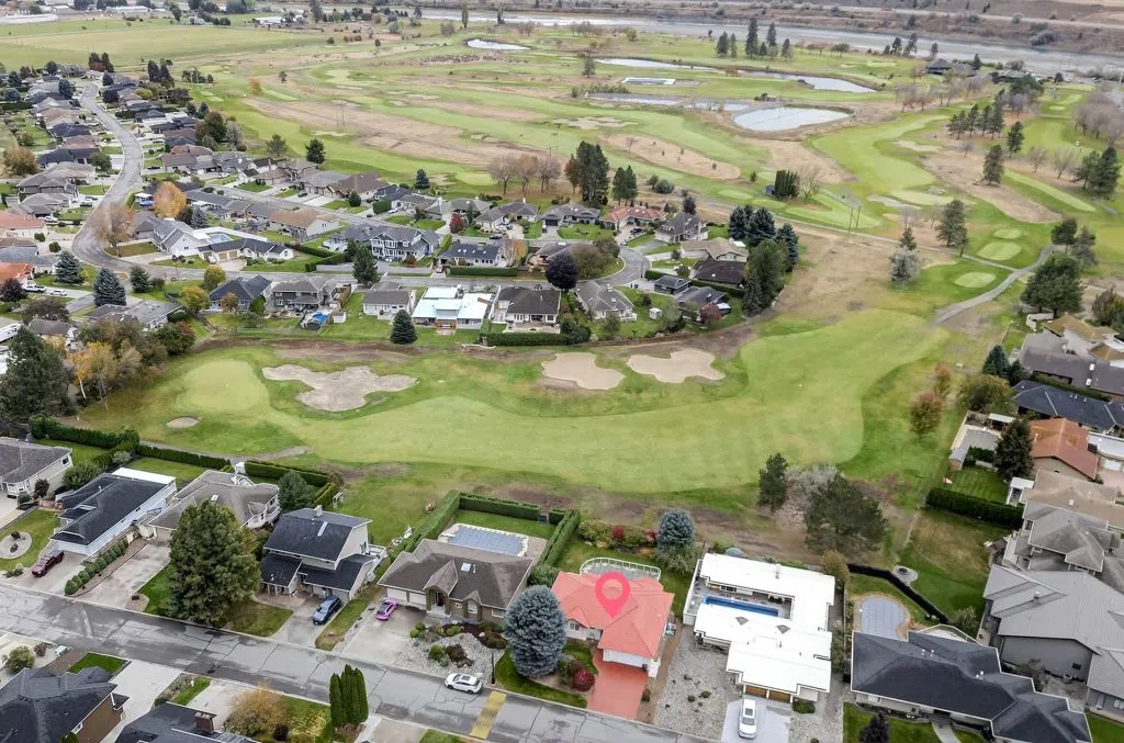Bordering the 3rd fairway of Rivershore Estates & Golf Links, this home is one of a kind—offering rare features not currently found in any other Rivershore listing: a heated in-ground pool and sweeping views of the South Thompson Valley. This custom-built level-entry bungalow with full walk-out basement blends a golf course lifestyle with private outdoor enjoyment. The main level is bright and open with vaulted ceilings, hardwood and tile flooring, and large windows that capture the views. A spacious living area has a gas f/p and extends to a generous deck to enjoy the view of golf course and the South Thompson Valley. The kitchen has a b/i nook with french door leading to the deck and also features custom granite countertops, b/i wall oven, cooktop, microwave, dishwasher and fridge with water and ice. Main floor laundry includes the washer and dryer and has sink and b/i cabinetry and conveniently located off of the double garage. The primary bedroom is spacious and has another set of sliders to the deck, double closets and ensuite with separate shower, w/i tub, double sinks with upgraded stone counter tops. Also on the main is a den/2nd bedroom (no closet) as well as a spacious 2-pce powder room. The walk-out basement expands the living space with a large recreation room with a 2nd gas f/p and leads directly to the covered patio, pool area and nicely landscaped yard complete with u/g irrigation. Two additional bedrooms, a full bathroom, and ample storage complete the lower level. Recent updates include new fencing, furnace (2020) pool pump and filter (2021) as well as stone counter tops in the kitchen and bathrooms. Additional conveniences include central air conditioning, underground sprinklers, fully landscaped and fenced yard and a double garage. A low monthly strata fee of $275 covers water, sewer, and garbage services, adding to the ease of ownership. Enjoy a true golf course lifestyle—all in a sought-after community just 20 minutes from downtown Kamloops. For more information, please call Jaclyn*, Loni* or Cliff* at RE/MAX Real Estate (Kamloops) at 250-374-3331. (*Personal Real Estate Corporation)