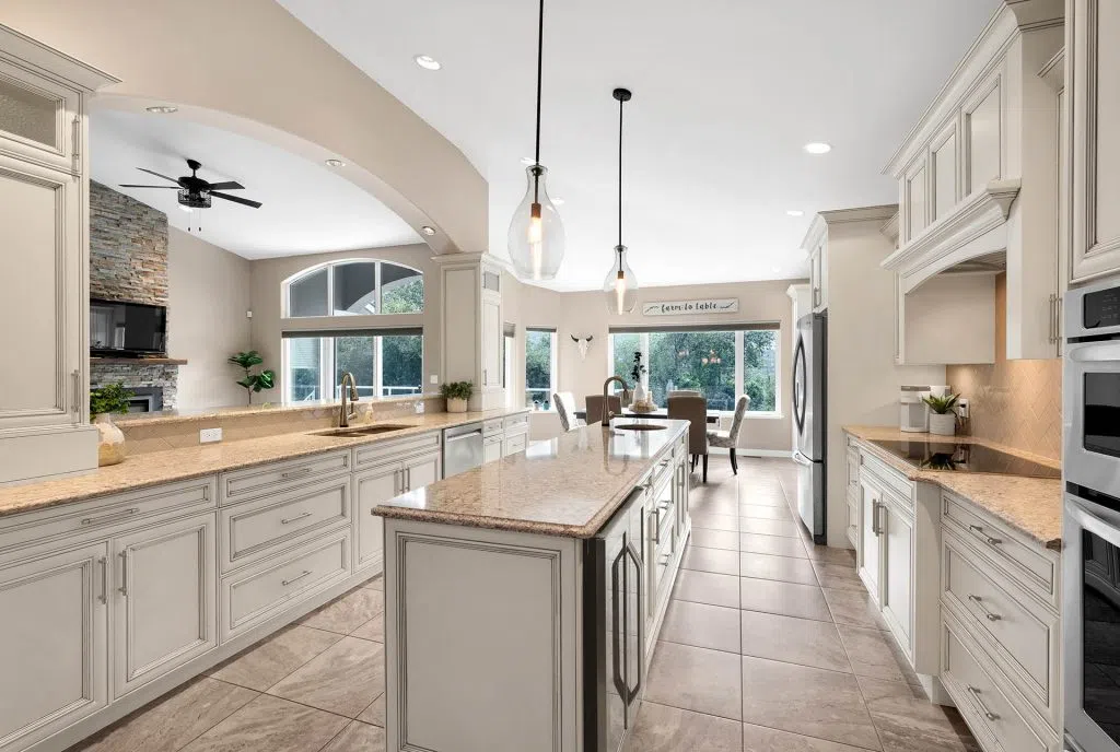 Welcome to this stunning 1820sq.ft. rancher with full daylight basement, perfectly positioned on the river in the desirable Dunes Golf Course community. This beautifully updated home showcases high-end finishings throughout, beginning with an expansive custom kitchen by Top40 featuring quartz countertops, a centre island with prep sink, eating bar, induction cooktop, built-in wall oven, convection microwave, beverage fridge and custom hutch in the dining nook. Vaulted ceilings and hardwood floors flow through the main level, where you’ll find a bright family room with a floor-to-ceiling stone gas fireplace and sliders to a sundeck overlooking the landscaped backyard. A second gas fireplace warms the living/dining area, creating a welcoming space for entertaining. The primary suite offers vaulted ceilings, private deck access, a walk-in closet, and a luxurious ensuite with heated tile floors, soaker tub, and oversized etched-glass shower. A second bedroom, updated 4-piece bath, and laundry room with sink complete the main floor. The lower level is designed for recreation and relaxation with a billiards room, family room with built-in bar, excercise rm, craft room with cabinetry, two large bedrooms, a 3-piece bath, and access to a covered patio with hot tub rough-in. Additional highlights include a double garage plus golf cart garage, central air, 200-amp service, security system, 2 new hot water tanks, central vac, and extensive storage. Exterior updates include stucco paint, new front door, updated lighting, and exposed aggregate driveway. The fully fenced yard with underground sprinklers is professionally landscaped for year-round enjoyment. This is a rare opportunity to own a thoughtfully updated home in one of Kamloops’ premier golf and riverfront neighbourhoods—priced to sell. For more information, please call Jaclyn*, Loni* or Cliff* at RE/MAX Real Estate (Kamloops) at 250-374-3331. (*Personal Real Estate Corporation)