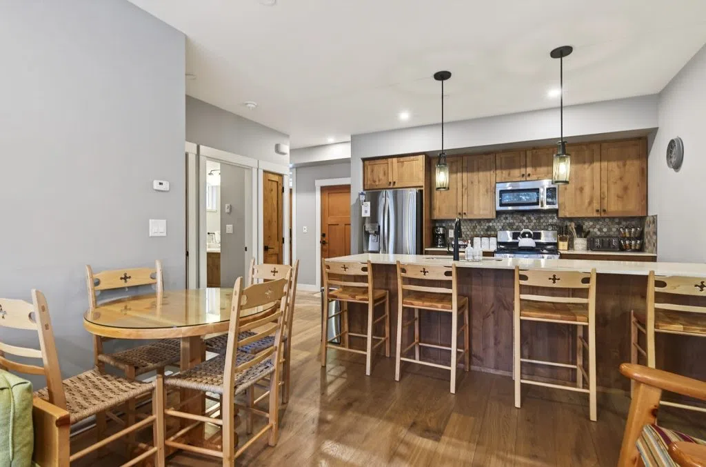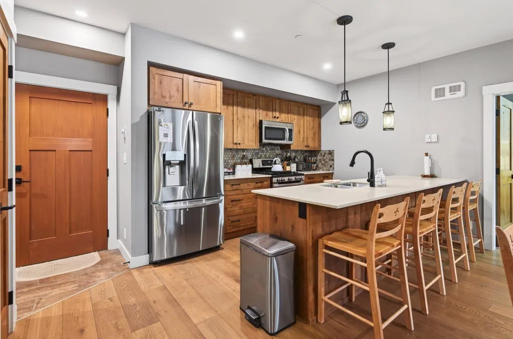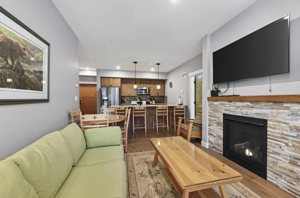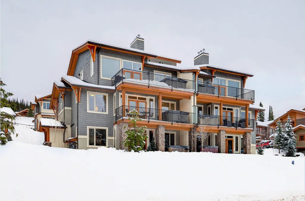 This 2 bedroom, 2 bathroom end unit townhome offers modern mountain living in the desirable East Village at Sun Peaks. This entry level home provides true ski in and ski out access near both the Orient and Morrissey chairlifts and is located directly opposite the future East Village development. Built in 2019, the upper level layout features an open concept design with large windows that bring in plenty of natural light. The living area includes a gas fireplace and opens to a south facing balcony with a private hot tub and room for a small patio set. The kitchen is finished with soft close cabinetry, stone countertops and stainless steel appliances. The primary bedroom includes a walk through closet leading to a four piece ensuite, while the second bedroom is conveniently located near the main three piece bathroom. A full size stacking washer and dryer are included in the unit. This townhome comes fully furnished and is ready to enjoy. A heated single car garage provides secure parking and storage, along with one additional parking stall out front. With year round access to skiing, biking, hiking and a short walk to the village, this property is ideal for full time living, a vacation getaway or a rental investment in a growing resort community. For more information, please call Sheryl Lynch, Jaclyn*, Loni* or Cliff* at RE/MAX Real Estate (Kamloops) at 250-374-3331. (*Personal Real Estate Corporation)
