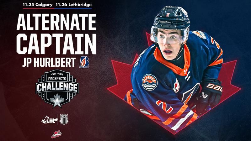 KAMLOOPS - Kamloops Blazers forward JP Hurlbert has been named an alternate captain of Team CHL at the upcoming 2025 CHL USA Prospects Challenge, which will take place on Nov. 25 in Calgary and Nov. 26 in Lethbridge..The 17-year-old Hurlbert, who is the reigning WHL player of the month, will serve as alternate captain ...