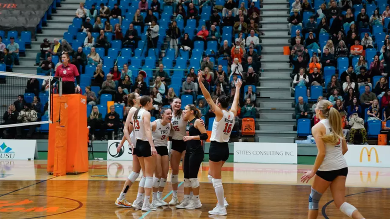 KAMLOOPS - The TRU WolfPack women's volleyball team took down the reigning national champions in a heavyweight showdown at the Tournament Capital Centre Friday (Nov. 28) night. Ranked tenth in the nation, the WolfPack women swept the eighth ranked Manitoba Bisons 3-0 (25-21, 25-11, 25-19) to improve to a Canada West-be...