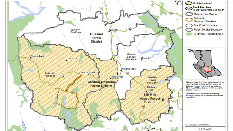 WILLIAMS LAKE - Effective noon Monday, May 31, 2021, Category Three open fires will be partially prohibited to the west side of the high-water mark of the Fraser River within the Cariboo Chilcotin For...