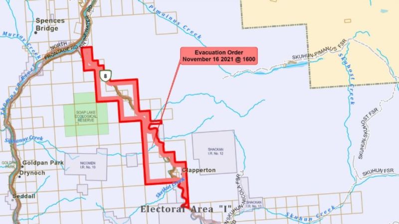 SPENCES BRIDGE - The Thompson Nicola Regional District has issued flooding evacuation orders to 37 properties in Electoral Area "I" (Blue Sky Country). The district says a flooding event in the area i...